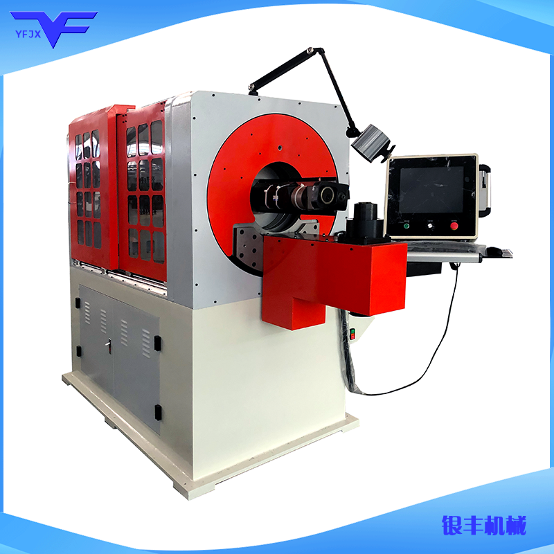 YF-5-80平面成型机可生产(2.0-14.0mm线径),本机采用线材成型机专用电脑控制系统,进口高精度伺服电机。电脑为中文介面,易操作、定准准确,可以存储上百种规格不同的加工程序,为下次调试缩短时间,根据荧光屏的工作情况,可以随时对产品的外径角度等进行修正,当无线、断线、缠线时自动停机设计及线架自动加速功能,令生产更轻松有效。适用于生产:汽车座椅悬架弹簧、遮阳板骨架、汽车门锁拉杆、工艺品金属线、洁具餐具支架、仓储笼、购物手推车等线材成型设备。